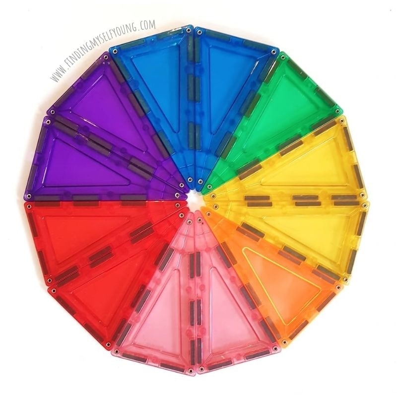 There are so many things I love about the 101 piece set, but my favourite is that it comes with pink tiles. Even though pink isn't traditionally a colour of the rainbow, we didn't own any pink tiles at all before getting MAGBLOX® so the girls were super excited to find them in the box.